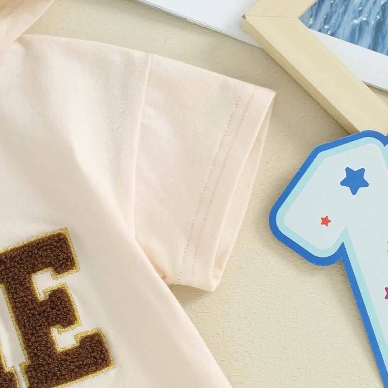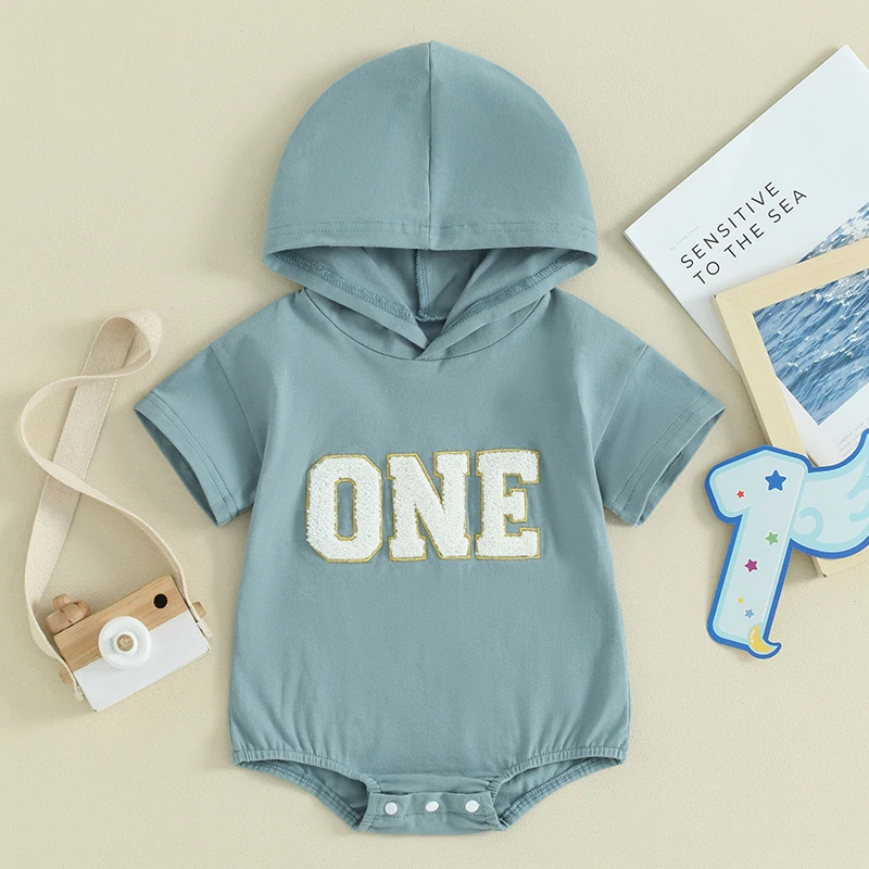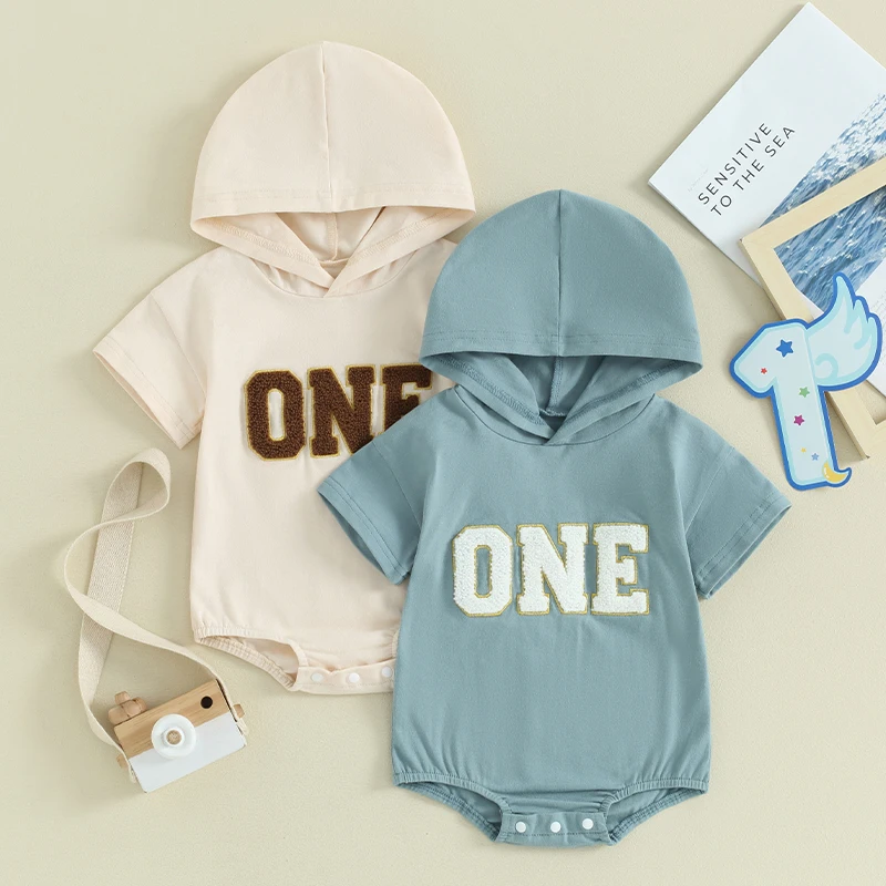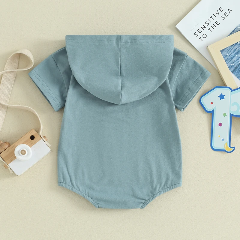 6-18M Infant Baby Boys Summer Hooded Romper Short Sleeve One Letter Embroidery Casual Jumpsuits