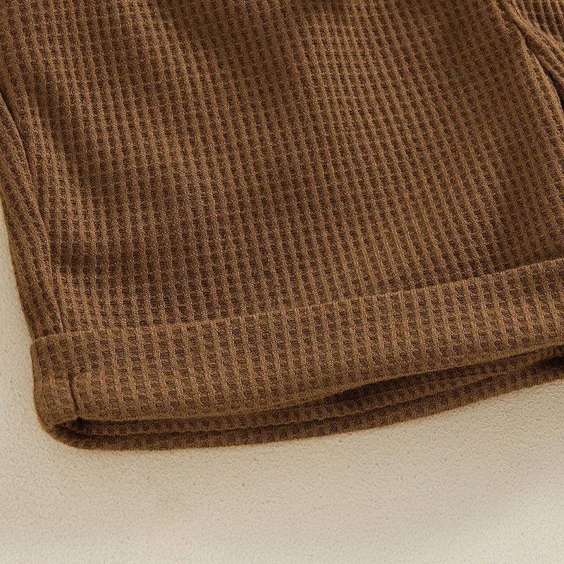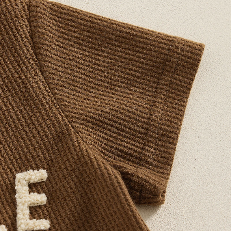 Toddler Boys Summer Outfits Fuzzy Letter Embroidered Waffle Short Sleeve T-Shirts Tops and Elastic Waist Shorts 2Pcs Clothes Set