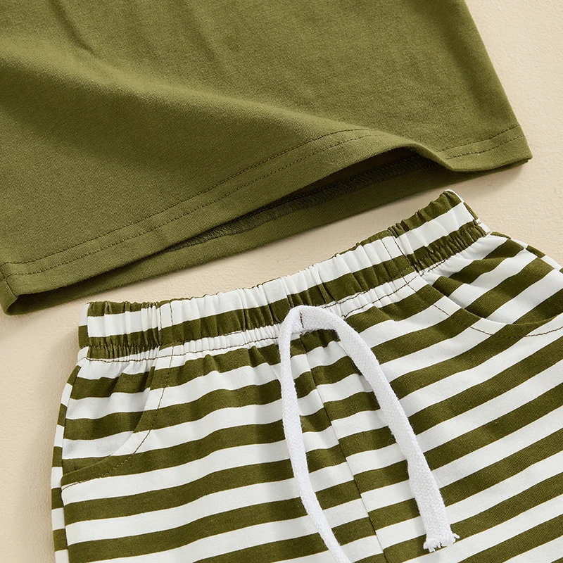 Toddler Baby Boy Summer Clothes Hoodie Short Sleeve Sweatshirt Tops Striped Shorts Set 2Pcs Kids Casual Outfits