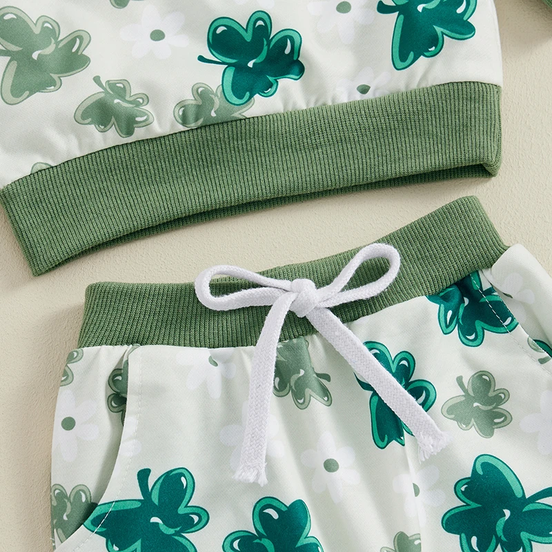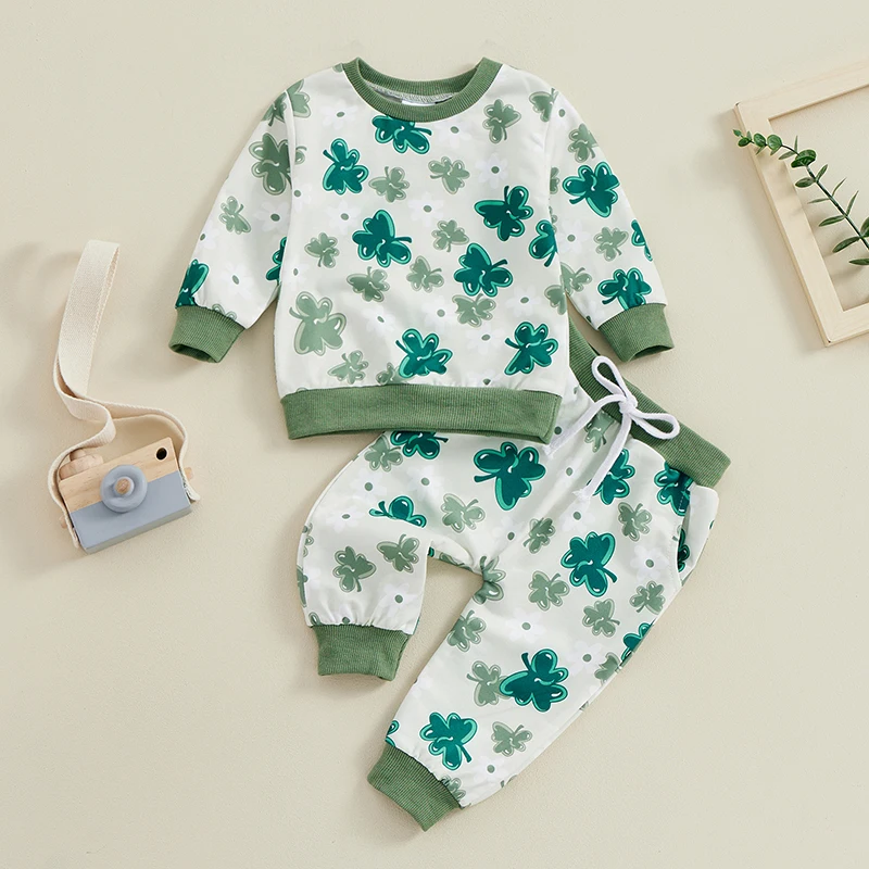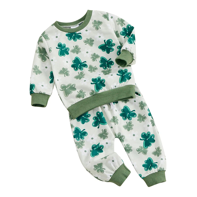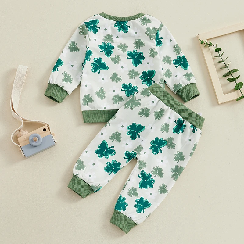 Toddler Girls Ireland Festival Outfits Shamrock Print Long Sleeve Sweatshirts and Long Pants 2Pcs Clothes Set