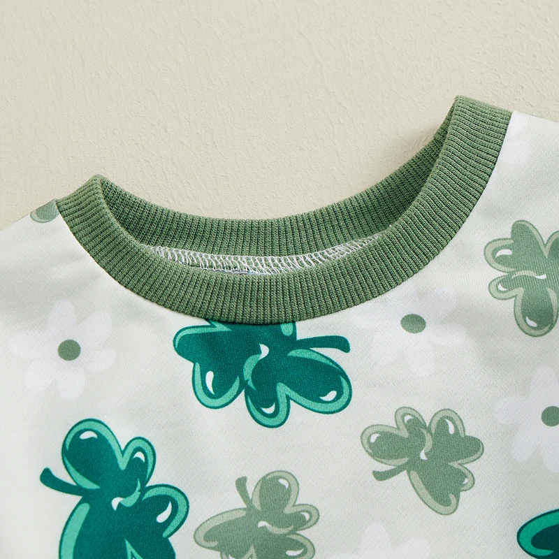 Toddler Girls Ireland Festival Outfits Shamrock Print Long Sleeve Sweatshirts and Long Pants Clothes Set